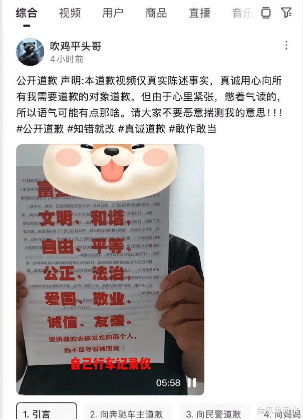 从法律角度分析,这种行为是否合法?面对这样的压力,当事人选择公开道歉并发出道歉视频。但该视频被平台下架了,可见此次事件的影响已经不仅仅局限于视频本身。此外,当事人的勇气与坚韧让人钦佩。他们没有被恐吓所吓倒,反而以实际行动表达了对正义的坚持和对法律的尊重。